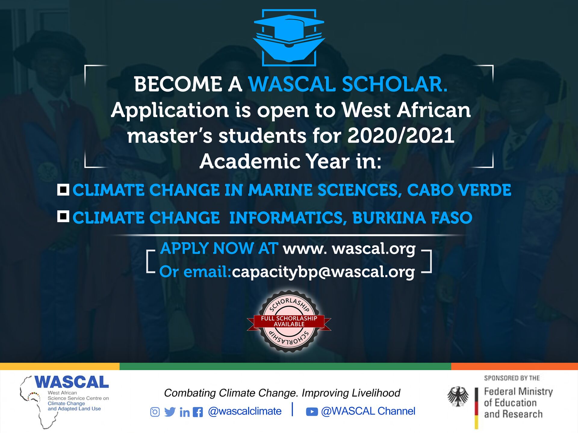 For further information, please visit www.wascal.org or send an information request to: wascalcv@uta.cv with copy to capacitybp@wascal.org. Eligible countries for application are: Bénin, Burkina Faso, Cabo Verde, Côte d'Ivoire, The Gambia, Ghana, Mali, Niger, Nigeria, Senegal and Togo. And all further West African countries.