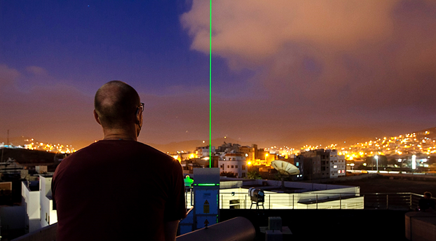 A green laser beam is now visible in the night sky above Mindelo, São Vicente. This laser is generated by the newly installed LiDAR (light detection and ranging), located on the rooftop of the Ocean Science Centre Mindelo (OSCM). Since June 29, the LiDAR system PollyXT from the Leibniz Institute for Tropospheric Research (TROPOS) is in operation at the OSCM and sends harmless laser pulses into the tropical atmosphere. With these land-based remote measurements, the researchers from TROPOS aim to study within campaigns the tropical atmosphere over Cabo Verde as well as to improve the accuracy of weather forecasts in the tropics.