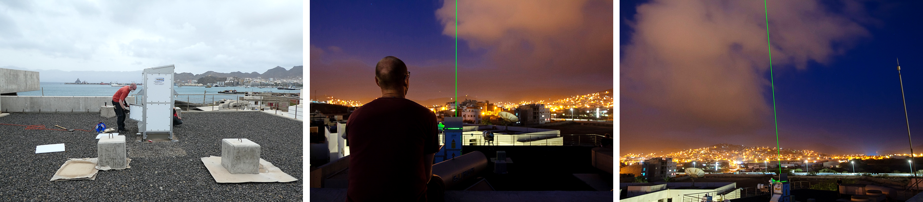 With the new LiDAR PollyXT for campaigns at the OSCM, international research in Cabo Verde is reaching a new and very exciting level. The installation and operation of the TROPOS LiDAR at the OSCM is a preparation for a comprehensive international research campaign. Within this campaign TROPOS, INMG and the OSCM, are part of the ESA-organised Aeolus Tropical Atlantic Campaign (A-TAC). This large-scale campaign comprises space, airborne and ground-based activities mainly addressing tropical wind and aerosol validation measurements. In the context of this campaign, wind speed measurements recorded by the ESA satellite Aeolus will be compared and validated with ground-based laser measurements from the LiDAR PollyXT. These validation measurements are expected to significantly improve wind and weather forecasts in the tropical Atlantic. In addition to validation measurements, the LiDAR PollyXT system at the OSCM will also contribute to investigate clouds and aerosols in the tropics and thus help to better understand the formation of tropical cyclones. The campaign will be further expanded by the temporary deployment of a second LiDAR system, called EVE, which is being set up by Greek scientists from the National Observatory of Athens (NOA) on São Vicente. Both LiDAR systems, PollyXT from TROPOS and EVE from NOA will measure dust particles and thus provide ground-based data for a better interpretation of the Aeolus satellite data.