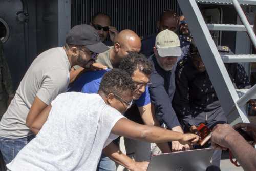 Participants during the practical part of the MultiBeam EchoSounder (MBES) course onbaord the Coast Guard’s patrol vessel Guardião. -
