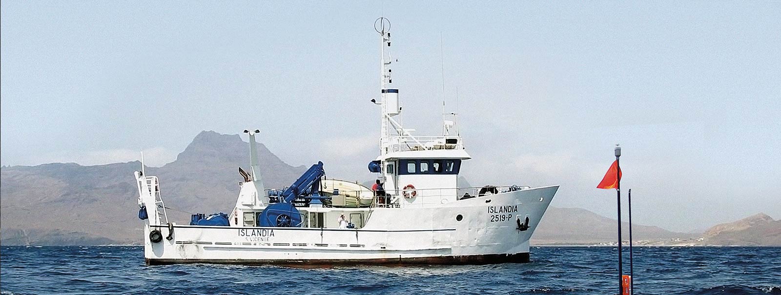 RV Islândia is a small fishing vessel for pelagic and bottom trawls, built in 1993 in Iceland. In 1994 it was donated to the Cape Verdean Government and is now under IMar's responsibility. Islândia today serves as an oceanographic platform to conduct field campaigns in the tropical Northeast Atlantic and the monthly sampling at the Cape Verde Ocean Observatory. In a joint effort of IMar (formerly INDP) and GEOMAR, the vessel received a moderate refit between 2006 and 2008 including the installation of two oceanographic winches, a starboard J-frame and a 10-foot laboratory container. Technicians at the IMar are in charge of the regular sampling at the CVOO site and maintenance of scientific equipment on board. For day trips, Islandia provides capacity for up to 9 scientists, for several-day trips with overnight stay, accommodation on board is available for up to 5 persons. On board you’ll find a small mess, kitchen, two bedrooms, fresh water supply and a small laboratory.